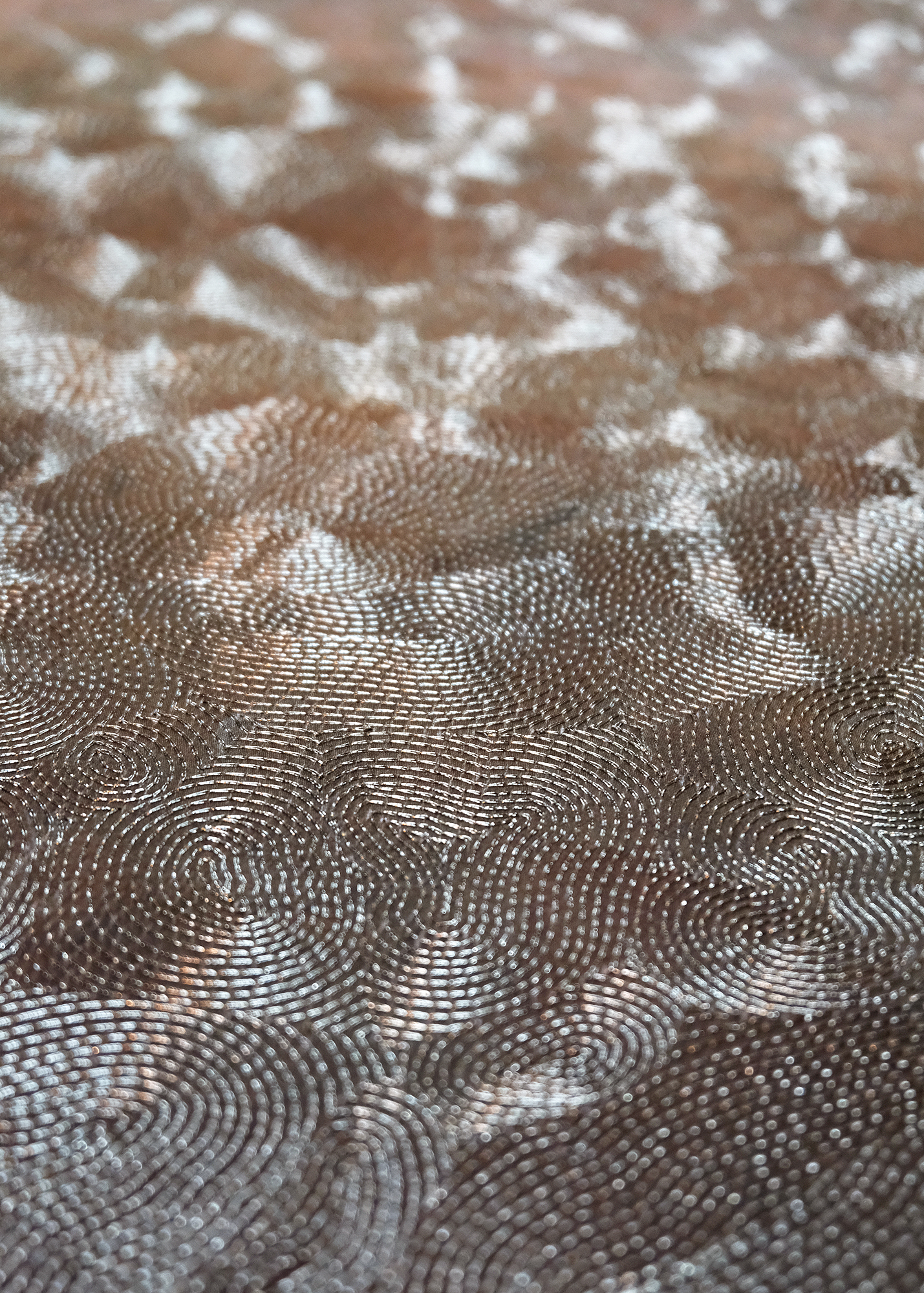 Fond en organza de soie teint à la main : encres pour soie et teinture végétale.