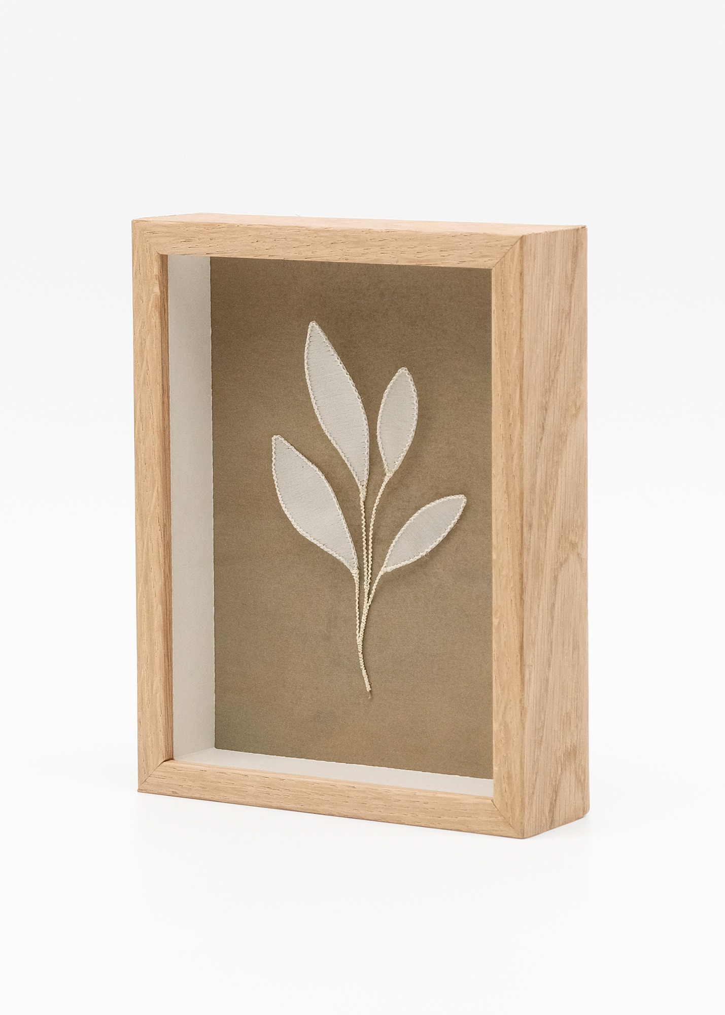 Orée n°3 évoque une feuille d’olivier. Une cueillette lumineuse à l’orée d’un sentier. Cette broderie invite à franchir la frontière d’un territoire encore inconnu mais accueillant, un jour de printemps où la nature s’éveille.